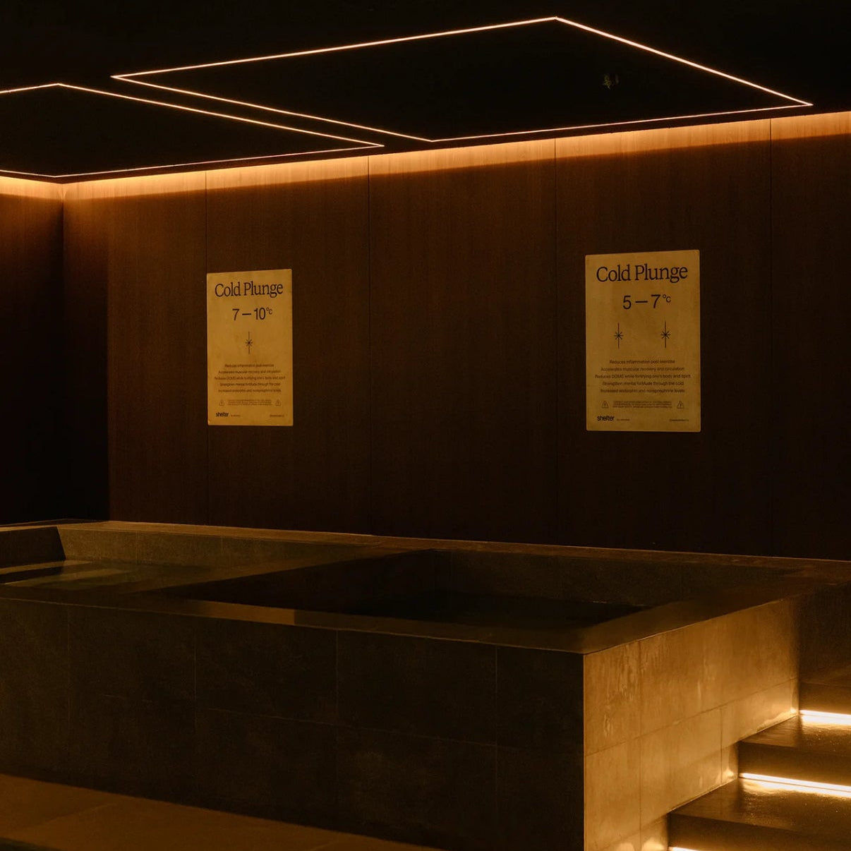 This project was designed and built for SHELTER in Singapore, a professional wellness space with high daily usage. The installation includes three cold plunge pools, one hot bath, and one sauna, all fully integrated into the space and engineered for reliability, consistent temperatures, and smooth user flow in a commercial environment.