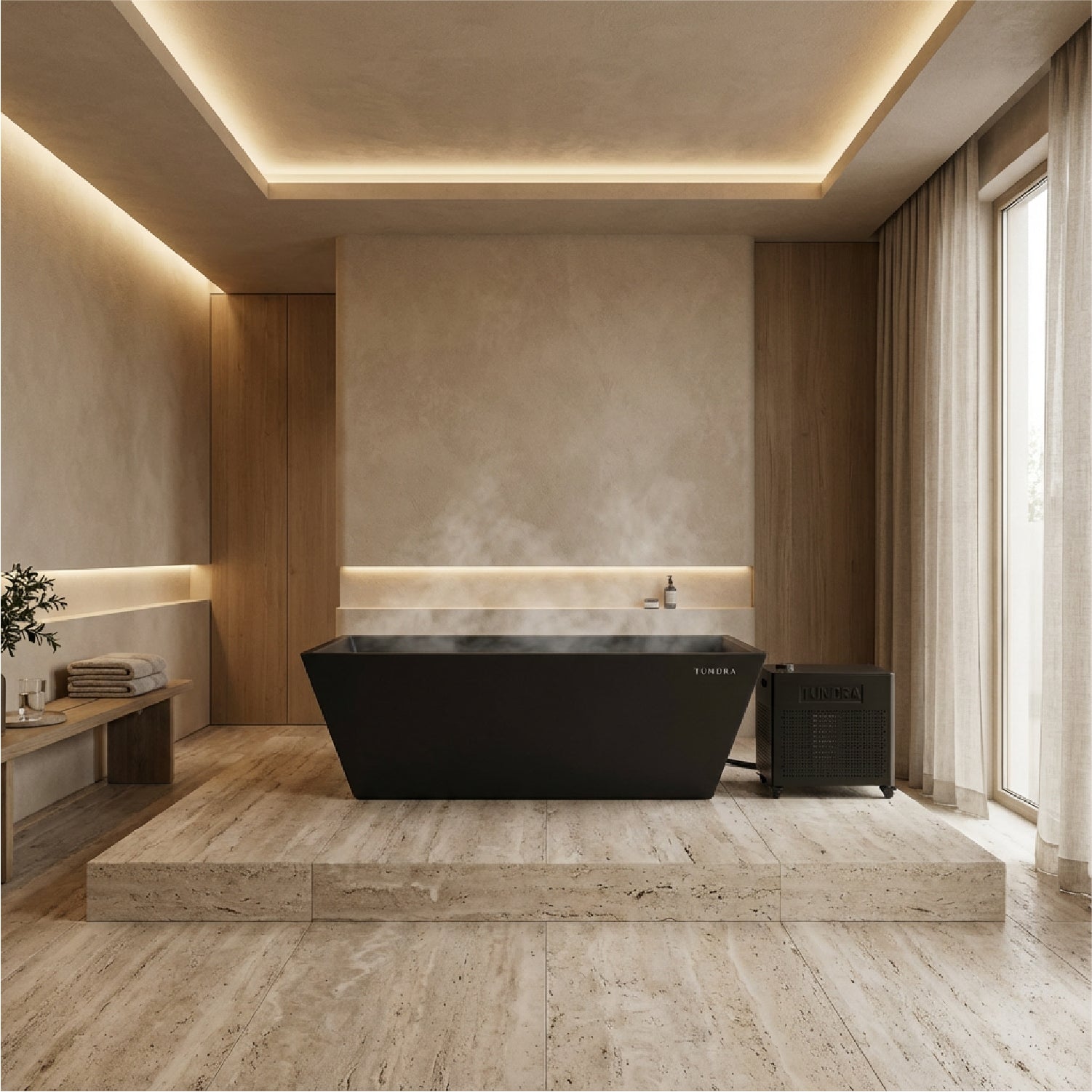 Insulated rectangular acrylic tub paired with the Borealis™ Heater & Chiller. Built with double-walled thermal foam and available in two sizes, including an extended option designed for taller users.